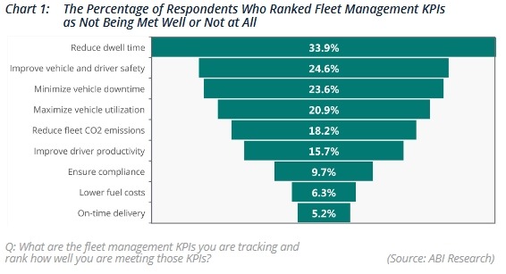 Investment in fleet management solutions has continued to grow, both in scale and functionality. In a recent survey of more than 300 fleet software decision makers conducted by ABI Research, HERE Technologies, and Amazon Web Services (AWS), 82.4% of respondents across North America, Europe, the
